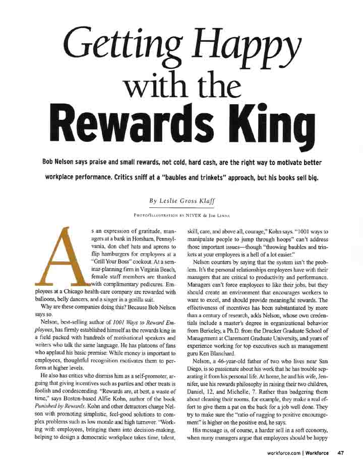 Bob Nelson says praise and small rewards, not cold, hard cash, are the right way to motivate better workplace performance. Critics sniff at a "baubles and trinkets" approach, but his books sell big.